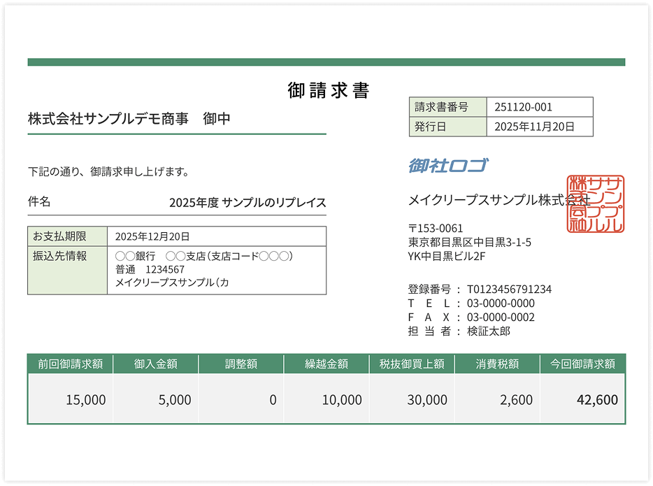 - オリジナルデザインの請求書を保存できます