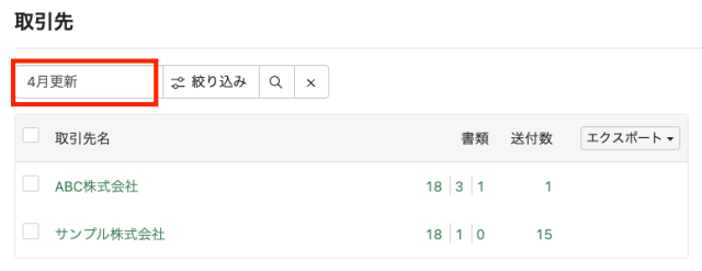 このメモに記載した内容は、取引先一覧の検索ボックスから検索できます。