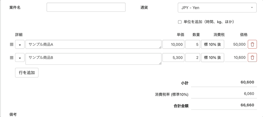 ・[ヘルプセンター] 明細行の追加・削除・並べ替えをする