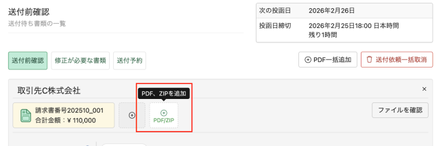 「PDF一括送付」で取り込む外部で作成したPDFファイルも、新しい条件が適用されます。