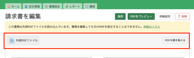 PDF一括送付で取り込み、MakeLeapsへ保管したPDFを編集画面から置き換える際にも同様です。