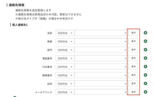 これまで、各項目の有効条件を設定する「高度な設定」は取引先情報のみに対応しておりましたが、連絡先情報にも対応しました。