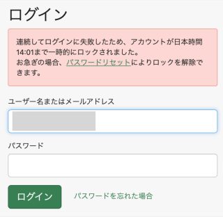 ログイン時に5回連続で失敗した場合、10分間アカウントがロックされ、10分過ぎるとロックが自動的に解除されます。